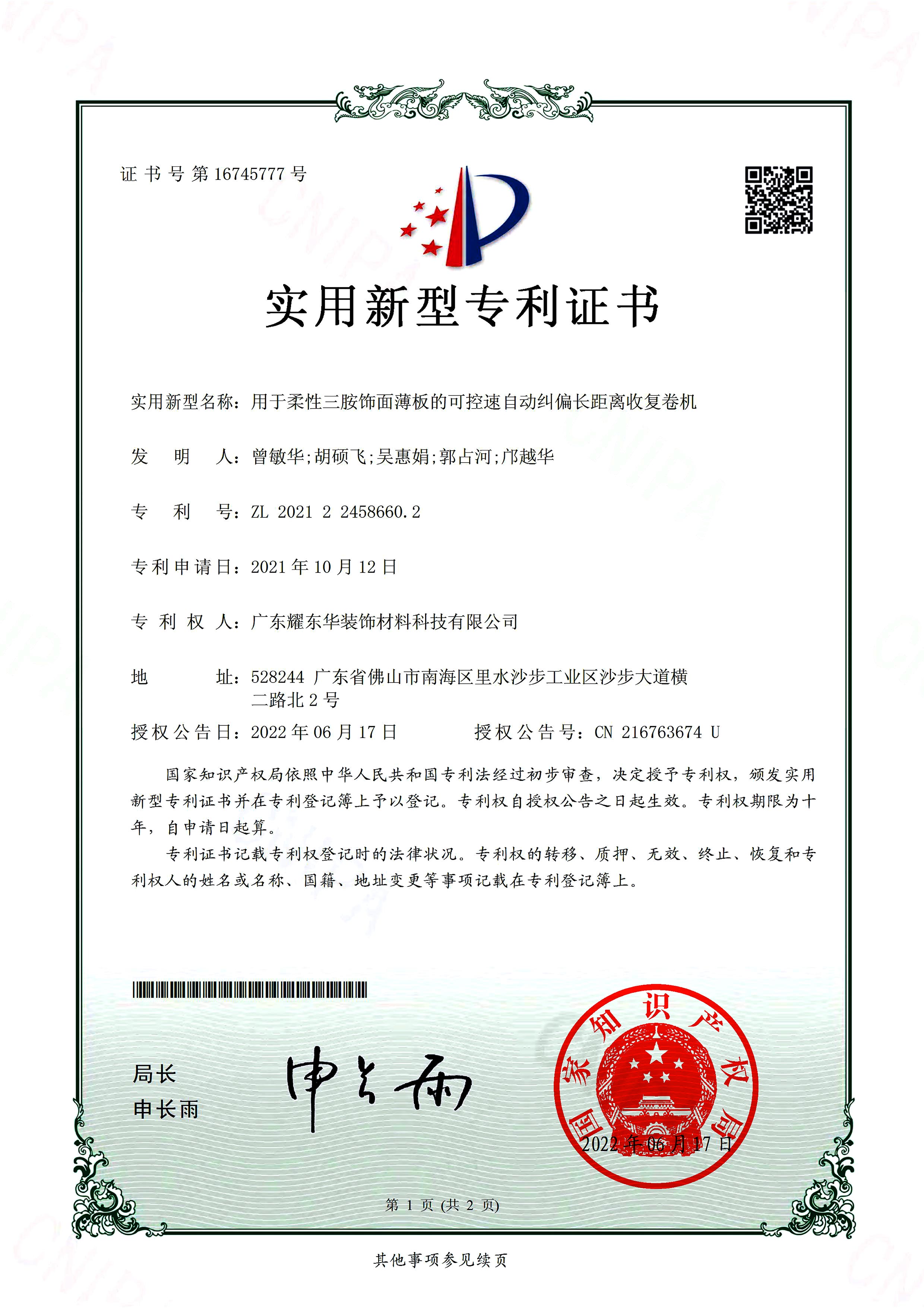 用于柔性三胺饰面薄板的可控速自动纠偏长距离收复卷机