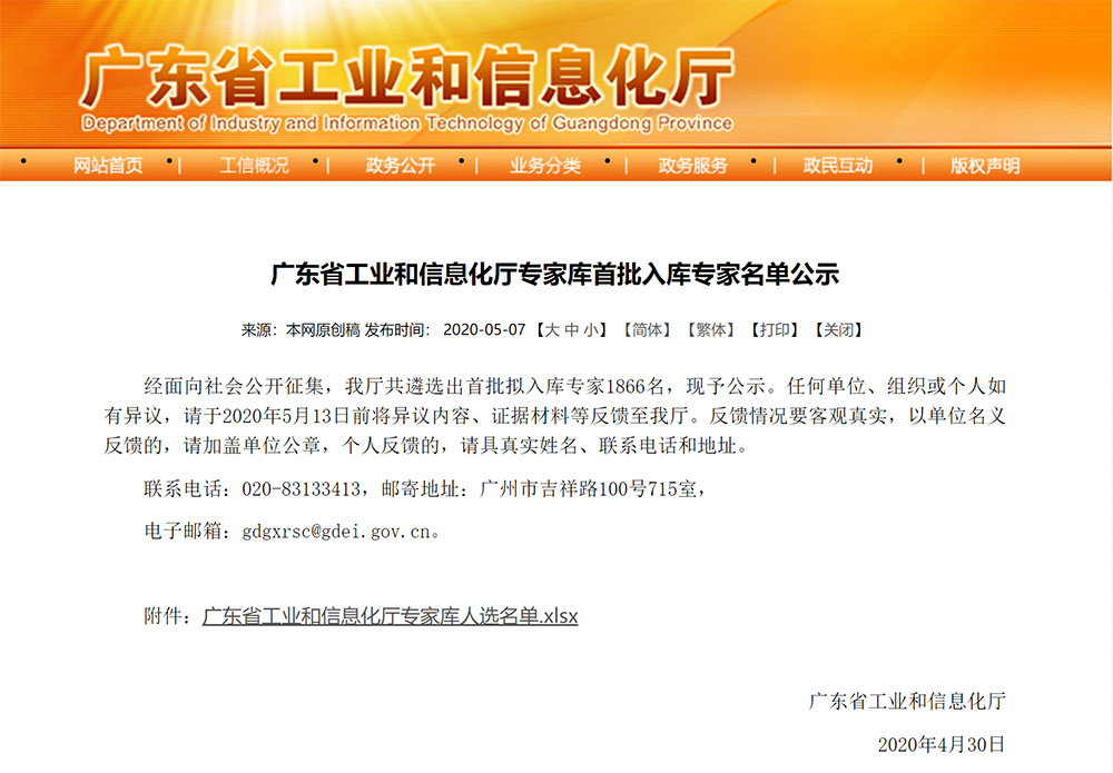 荣耀体育在线(中国)首页公司曾敏华董事长首批入库“广东省工业和信息化厅专家库”